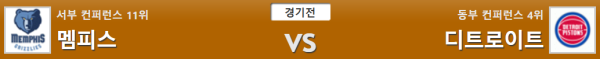 11월04일 10:00 NBA 멤피스 그리즐리스 vs 디트로이트 피스톤스 분석