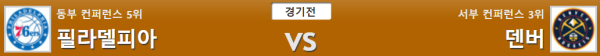 필라델피아 vs 덴버 [NBA] 01월06일 10:30